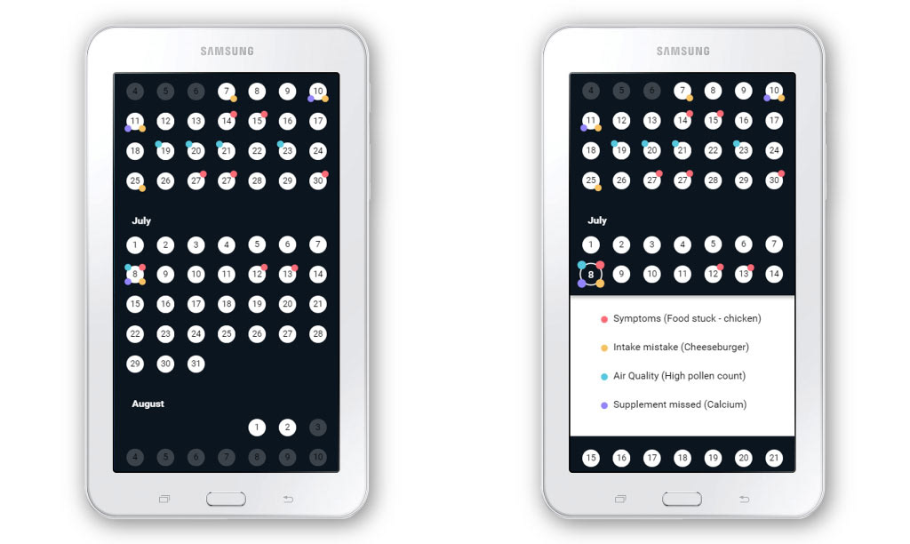 The app also tracks pollen count based on patient location. This air quality feature provides the healthcare team with information to explore and better understand the relationship between local pollen count and EoE.